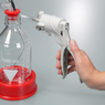 - Turn the handle clockwise to close the collector and remove it from the powder/granulate.