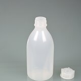 La botella de cuello estrecho con tapón de rosca es adecuada como botella de envasado, por ejemplo, para productos químicos (álcalis, ácidos, sustancias agresivas) y líquidos.
