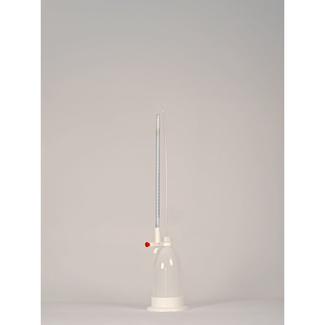 Die Titrierbürette mit Splitterschutz ist eine Schnellbetriebsbürette nach Dr. Schilling, mit Schellbachstreifen, automatischer Nullpunktabsaugung und Bürkle-Dosierarmatur.