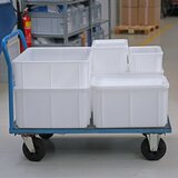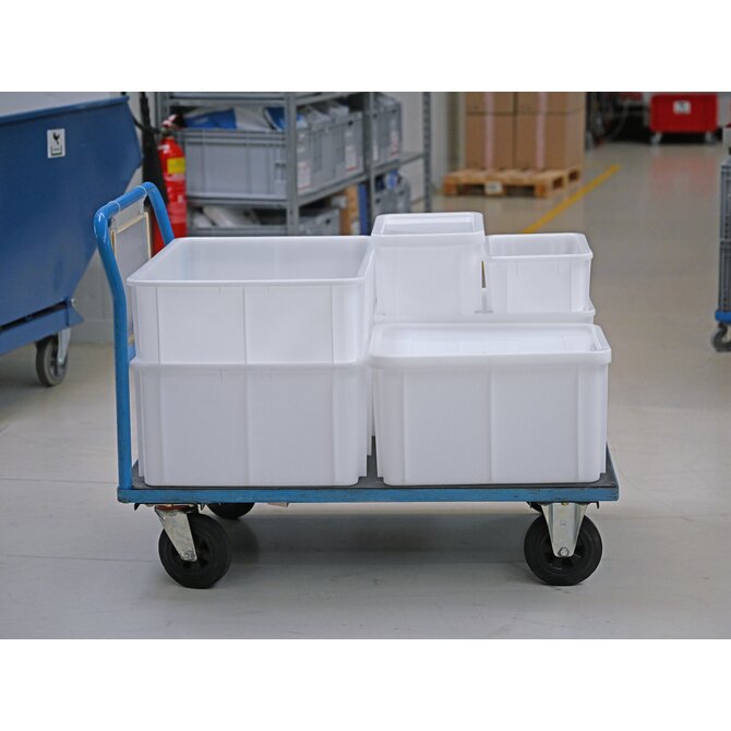 Το λευκό του χρώμα διευκολύνει τον έλεγχο για υπολείμματα, ενώ οι στρογγυλεμένες εσωτερικές άκρες και οι λείες επιφάνειες του καθιστούν τον καθαρισμό του γρήγορο και εύκολο. Οι κλειστές, χωνευτές λαβές και τα πλευρικά τοιχώματα εξασφαλίζουν την ασφαλή μεταφορά και αποθήκευση μεγάλης ποικιλίας υλικών.