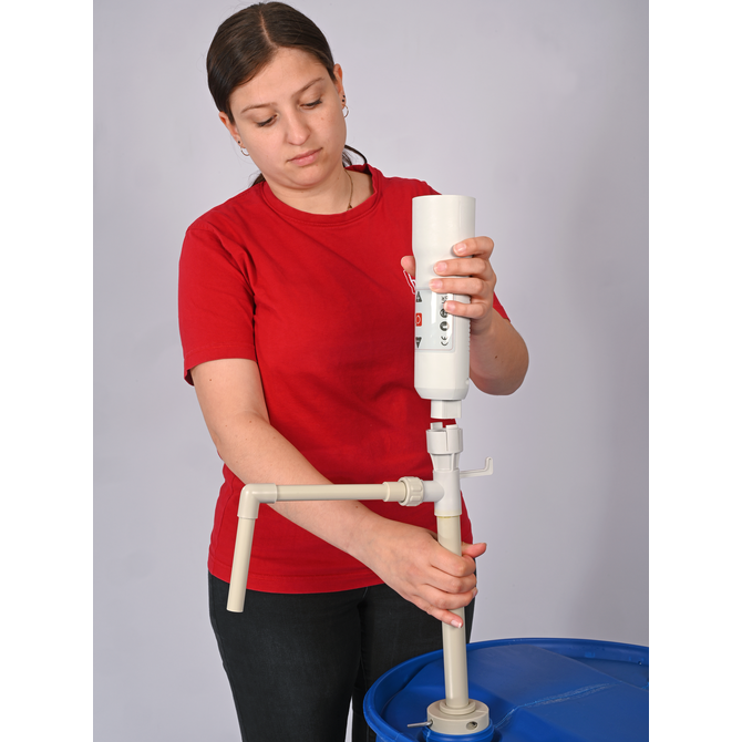 The electric barrel pumps, which can be operated with one hand, can stand freely in the barrel or be fixed in the container with a barrel screw fitting as an accessory.