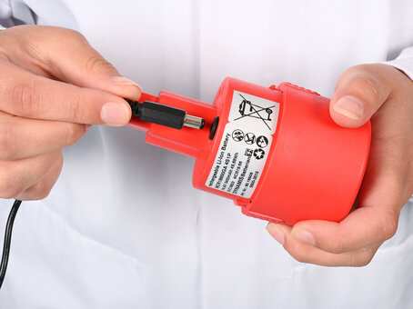 Lightweight and powerful lithium-ion battery, without memory effect, with auto-stop function to protect against deep discharge. The strong battery power allows filling up to approx. 1500 l per charge.
