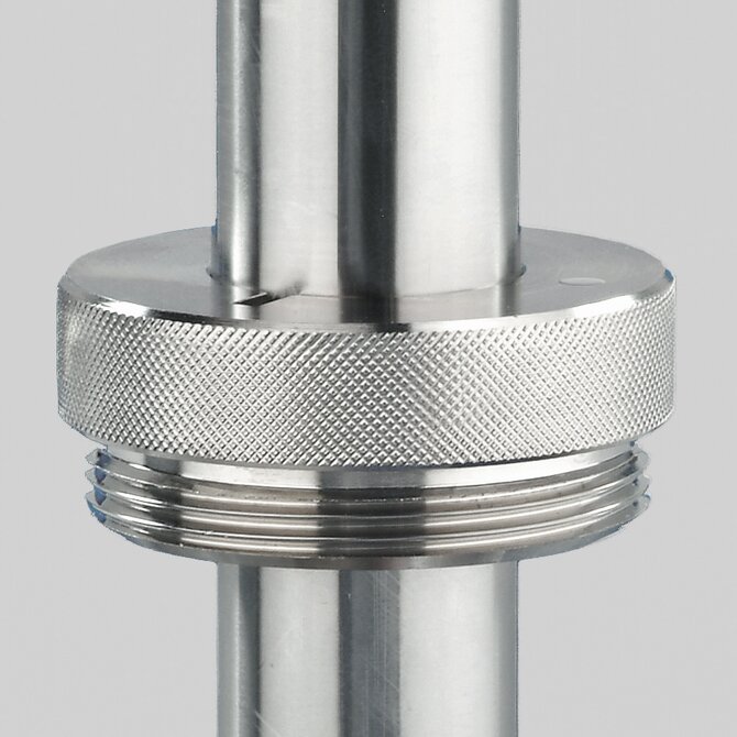 Barrel screw joint made of nickel-plated brass for barrel pump stainless steel. Prevents electro-static charge in combination with the Anti-static set. For the safe transfer of flammable and easily flammable liquids. For containers with R 2" steel fine thread inside.