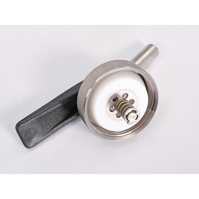 For containers with self-closing tap, constant ventilation can be set via a plastic lever on the screw cap.