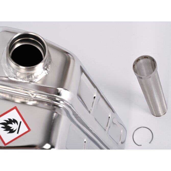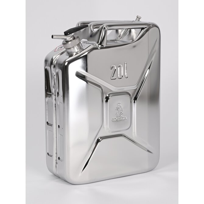 - Safety jerrycans stainless steel, with fine dosage spout and ventilation screw