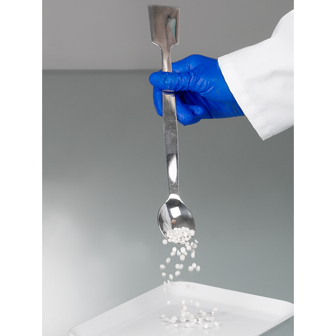 This high-quality, double-sided stainless steel spoon spatula is a versatile laboratory aid for demanding industrial and laboratory applications. Whether you are working with powders, granulates, pastes or liquids, this versatile multi-purpose spoon enables you to work safely, cleanly and efficiently with a wide variety of media.
