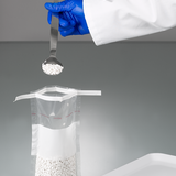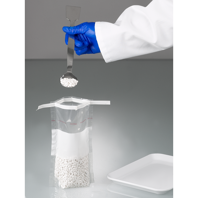 The flat front edge of the volumetric spoon is ideal for picking up medium from the bottom of the container or for getting into the corners of the container, thus allowing for good emptying of small remaining amounts. The flat base makes it possible to set the volumetric spoon down without spilling the content.