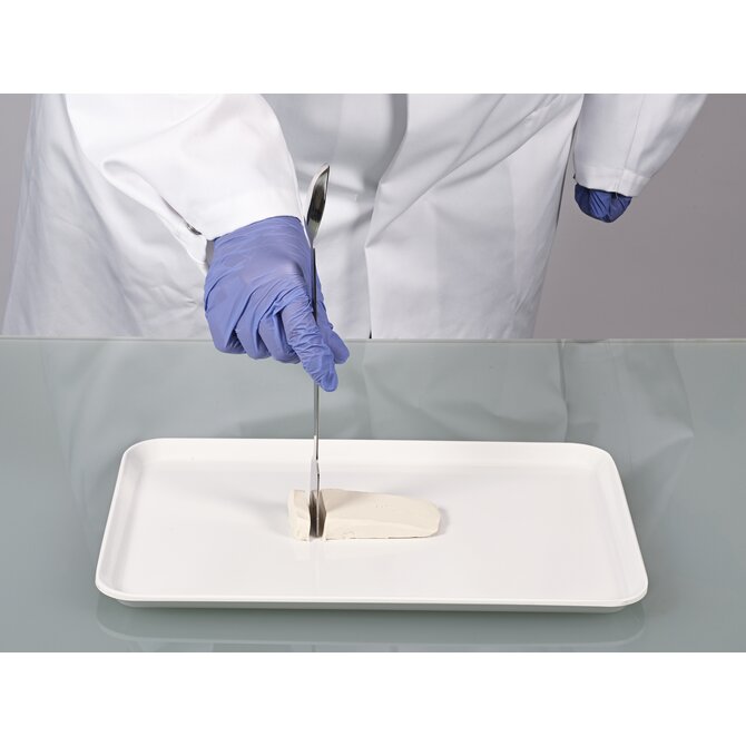 Thanks to its double-sided spoon and spatula design, the tool offers maximum flexibility in daily use. Media can be dispensed, transferred, removed or evenly distributed quickly, precisely and cleanly.
