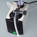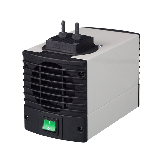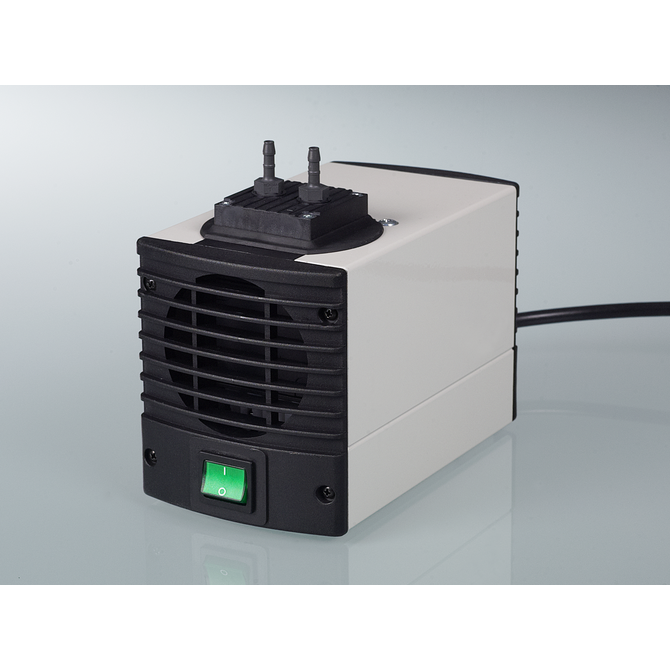 The AirJet Mini single-head membrane vacuum pump is suitable for a variety of applications in the laboratory and industry. The dry running membrane vacuum pump is able to pump, compact and evacuate 100 % oil-free, which means it does not distort results or add impurities, and can also be used as a compressor.