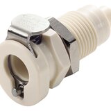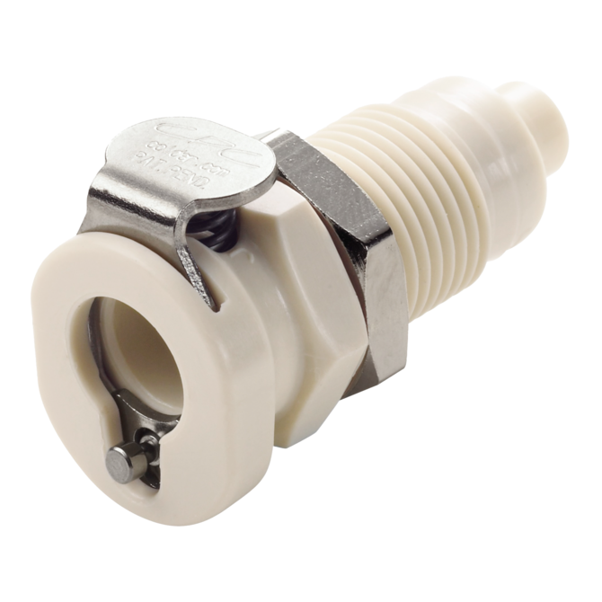 Los acoplamientos rápidos están disponibles con boquilla para manguera, conexión roscada para manguera, conexión roscada o como pieza integrada para paneles de control, cada uno con o sin cierre de válvula.