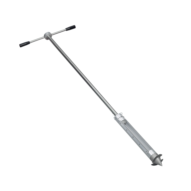 3. Utilizando el mango, taladre el muestreador en el sentido de las agujas del reloj en el medio a muestrear hasta la profundidad deseada (la cámara de muestras se cierra).