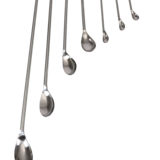 Lot de quatre cuillères doseuses en inox, comme aide pour le dosage simple et rapide de quantités entre 1,25 et 15 ml. Le volume est respectivement gravé dans le manche de la cuillère doseuse.
