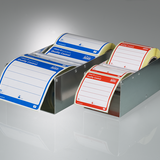 Les étiquettes sont disponibles en plusieurs couleurs. Avec pré-impression en rouge, bleu, vert, jaune, noir ou neutre (en blanc).