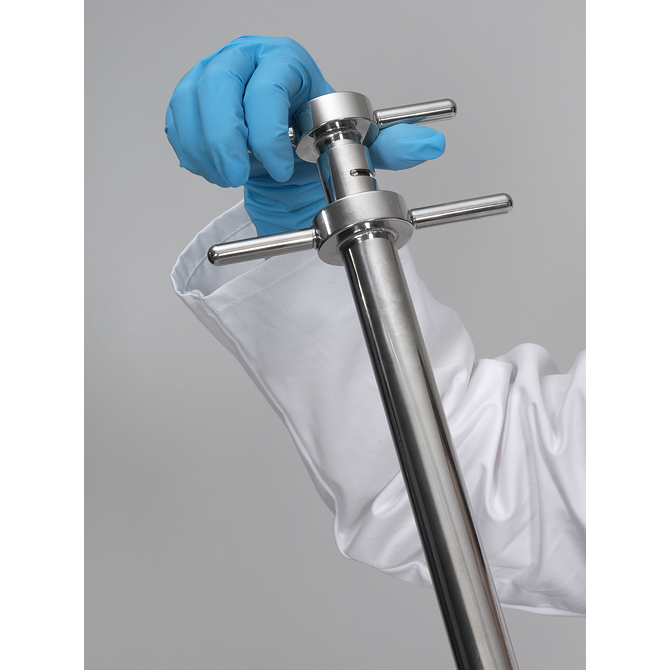 - Tourner la poignée supérieure de la lance à échantillons dans le sens horaire. Le collecteur est fermé et peut être retiré de la poudre/du granulé.