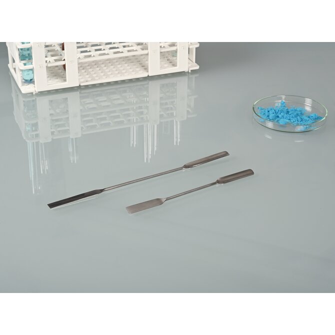 La micro-spatule permet de doser, d'échantillonner ou de traiter en toute sécurité de petites quantités de poudres, de produits chimiques, de pâtes, de crèmes ou de substances actives. Cette cuillère de laboratoire en inox est fabriquée intégralement sans bords ni fissures ni rainures, ce qui permet d’exclure toute impureté ou contamination croisée car aucun reste ni détergent ne peut s’y déposer.