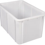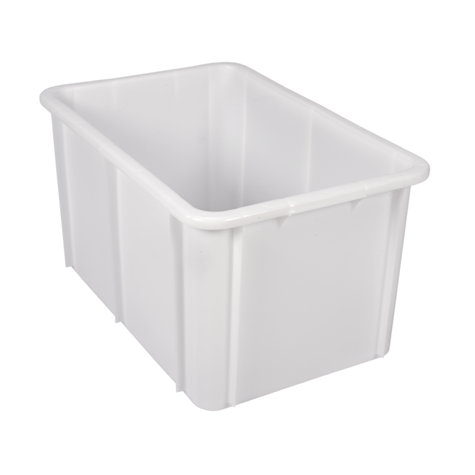 Jego biały kolor ułatwia kontrolę pozostałości, a zaokrąglone krawędzie wewnętrzne i gładkie powierzchnie sprawiają, że czyszczenie jest szybkie i łatwe. Zamknięte, zagłębione uchwyty i ścianki boczne zapewniają bezpieczny transport i przechowywanie szerokiej gamy materiałów.