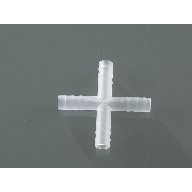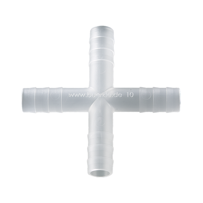 Conector de mangueira cilíndrico de quatro vias para ligar mangueiras.