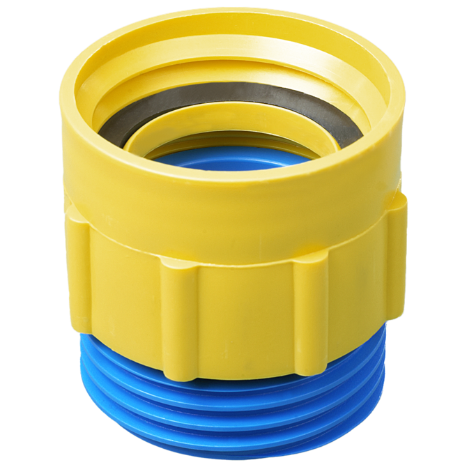 Резьбовое соединение для бочек из ПП обеспечивает надежное крепление на бочки. Выпускается в виде трех модификаций для различных резьб. Предназначено для работы с неогнеопасными жидкостями.