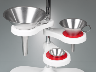 Прочная воронка из нержавеющей стали обеспечивает легкое заполнение и перемещение свободно сыпучих порошков, жидкостей и маловязких веществ. Благодаря воздушному каналу на выходном патрубке она обеспечивает полный и беспрепятственный поток, что позволяет эффективно работать с самыми разными материалами.